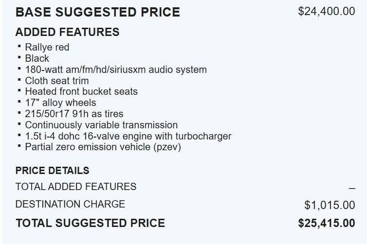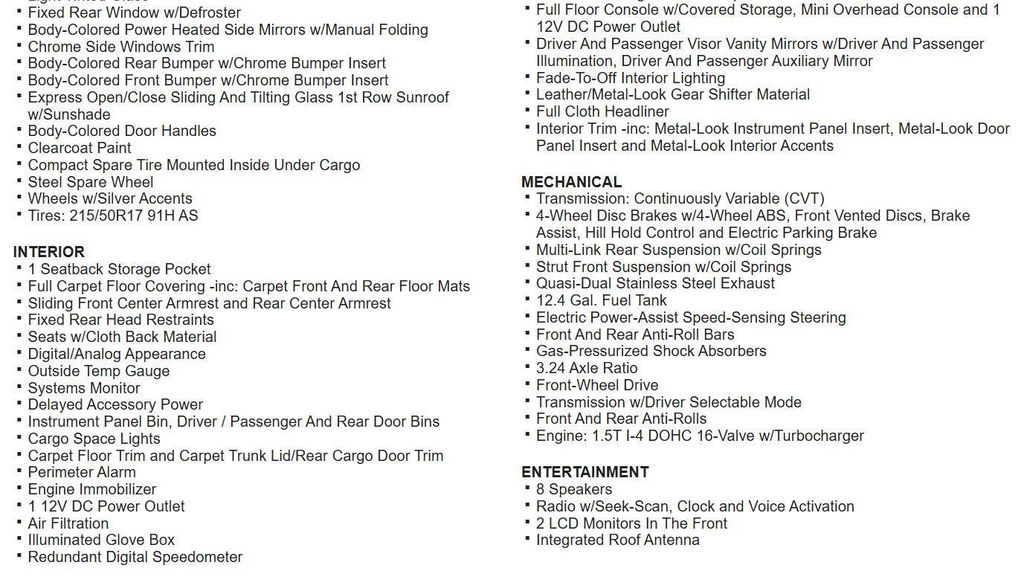 - Interior maximum rear cargo volume: 428 L (15 cu.ft.)