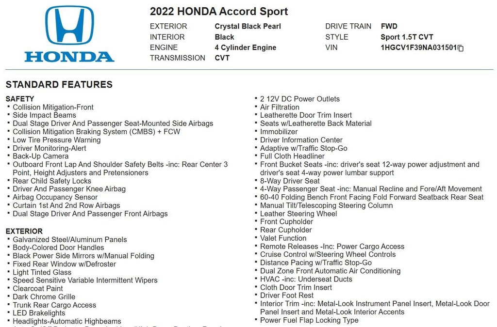 LED Brakelights, 8-Way Driver Seat, Adaptive w/Traffic Stop-Go, Collision Mitigation Braking System (CMBS) + FCW, Driver Monitoring-Alert, Back-Up Camera