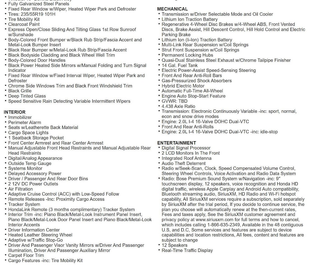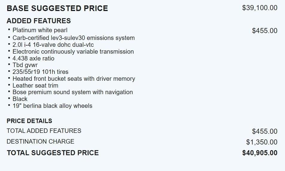 Wheels: 19 Berlina Black Alloy, Express Open/Close Sliding And Tilting Glass 1st Row Sunroof w/Sunshade, 12 Speakers, Heated Leather Steering Wheel, Adaptive Cruise Control (ACC) with Low-Speed Follow, Blind Spot Information (BSI) System Blind Spot, Collision Mitigation Braking System (CMBS) + Forward Collision Warning (FCW), Front And Rear Parking Sensors, Back-Up Camera