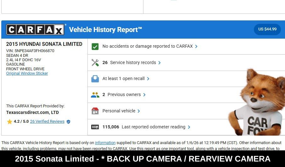 Experience the Pinnacle of Sophistication and Technology in this Stunning 2015 Hyundai Sonata Limited. Boasting a Clean CARFAX and an impressive array of premium features, this Sonata is the perfect blend of style, comfort, and cutting-edge innovations.