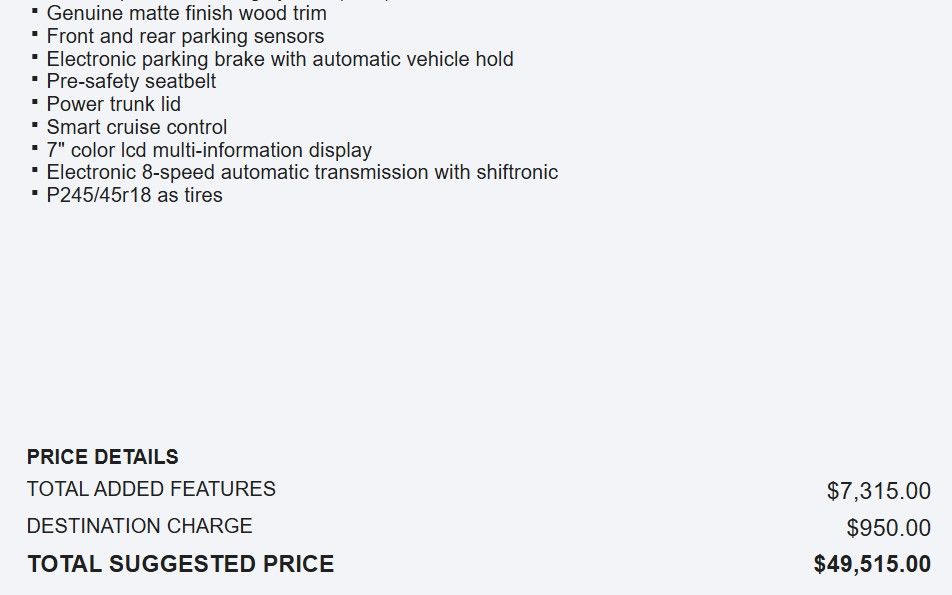 - Transmission: 8 speed automatic