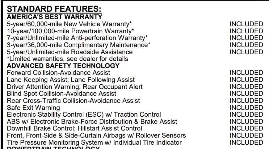 Transmission: 8-Speed Automatic w/SHIFTRONIC -inc: drive mode select, Streaming Audio, Bluetooth Wireless Phone Connectivity, 2 LCD Monitors In The Front, Adaptive w/Traffic Stop-Go, Collision Mitigation-Front, Driver Monitoring-Alert, Blind-spot Collision-Avoidance Assist (BCA) Blind Spot, Forward Collision-Avoidance Assist (fca) w/Pedestrian and Cyclist & Junction-Turning Detection, Rear View Monitor (RVM) Back-Up Camera
