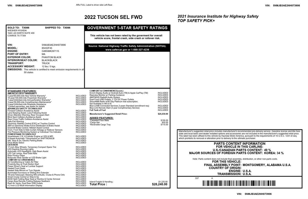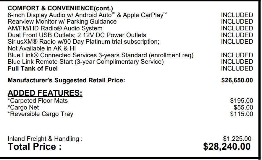 OPTION GROUP 01, PHANTOM BLACK, BLACK, STAIN & ODOR RESISTANT CLOTH SEAT TRIM, CARPETED FLOOR MATS, CARGO NET, CARGO TRAY