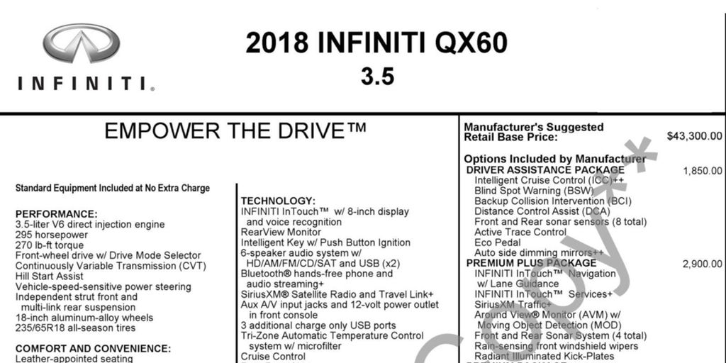 2018 INFINITI QX60 Base Premium/Premium+/Driver Assist-$8K Options