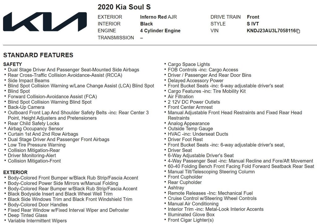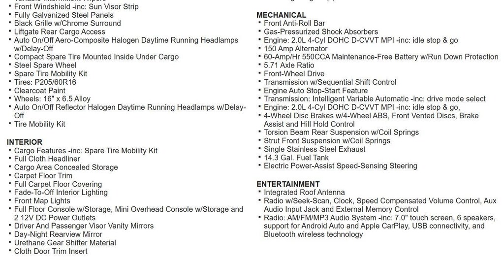 Radio: AM/FM/MP3 Audio System -inc: 7.0 touch screen, 6 speakers, support for Android Auto and Apple CarPlay, USB connectivity, and Bluetooth wireless technology, Blind Spot Collision Warning w/Lane Change Assist (LCA) Blind Spot, Forward Collision-Avoidance Assist (fca), Rear Cross-Traffic Collision Avoidance-Assist (RCCA), Collision Mitigation-Front, Driver Monitoring-Alert, Back-Up Camera