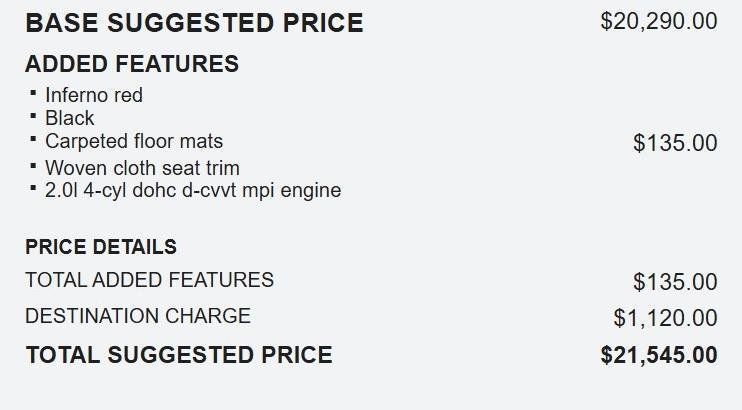 This car has every thing. Fun to Drive Great on Gas , lots of room , Very Quiet Very modern interior , infotainment is excellent I would definitely recommend this car for the price - 5.0