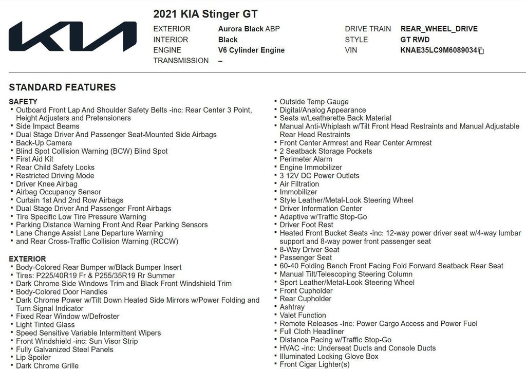 Discover the thrilling performance and premium features of this 2021 Kia Stinger GT. With its powerful 3.3L V6 engine, rear-wheel-drive handling, and impressive fuel efficiency, this sports sedan is the perfect blend of style and substance.