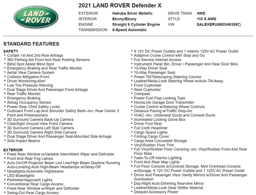 2021 Land Rover Defender 110 X Apple/Adaptive Cruise/HUD/22in