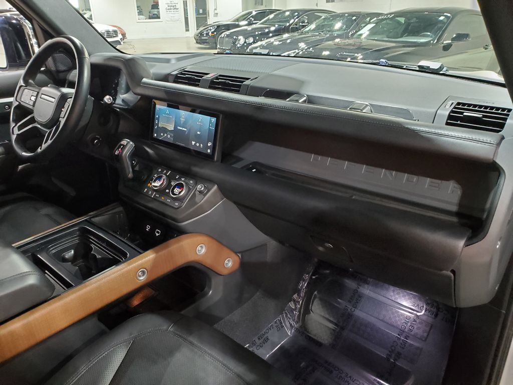 The interior of this Defender is a sanctuary of luxury and technology. From the premium Meridian sound system to the heads-up display and ventilated seating, every detail has been meticulously crafted to enhance your driving experience. The power moonroof and 22-inch gloss black wheels add a touch of sophistication, while the Apple CarPlay and Android Auto integration ensure seamless connectivity.
