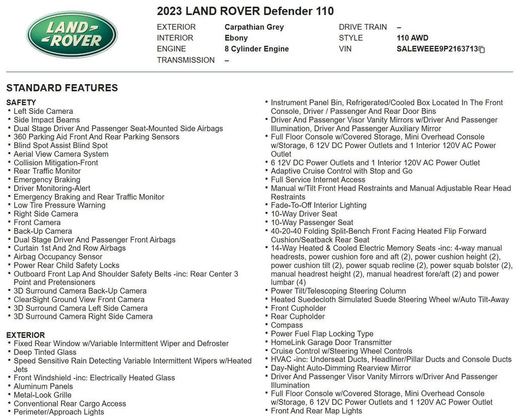 I have a 2022 Defender 110 X-Dynamic HSE with a bunch of options. My wife and I also currently own a LR4 and Range Rover Sport. I pulled up to a valet with the Defender and they had a new Chevy Tahoe and a newer Cadillac Escalade in front of me. Those cars went to the back lot and our Defender was parked in the front row. The Defender is such a cool ride and looks tough and luxurious. So far the Defender has been fun to drive around town and has a lot of space for our family of 5. I haven’t been off reading or on winter roads yet. However, I’m confident this vehicle will shine if it is equal to my LR4 or previous LR3 vehicles I’ve owned. I’m happy with the engine power, handling, and braking so far. My kids love the power ports located everywhere.