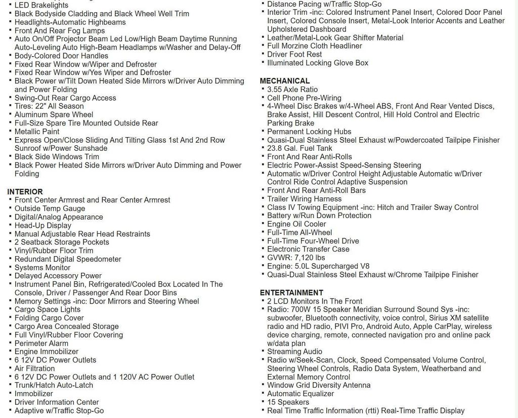 Tires: 22" All Season, Express Open/Close Sliding And Tilting Glass 1st And 2nd Row Sunroof w/Power Sunshade, Streaming Audio, 15 Speakers, Heated Suedecloth Simulated Suede Steering Wheel w/Auto Tilt-Away, HomeLink Garage Door Transmitter, Adaptive Cruise Control with Stop and Go, Head-Up Display, 360 Parking Aid Front And Rear Parking Sensors, Blind Spot Assist Blind Spot, Aerial View Camera System, Rear Traffic Monitor, Back-Up Camera