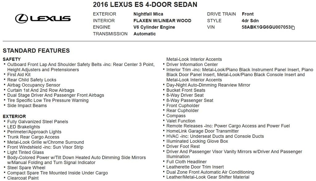 I drove trucks and suburbans all my life. Due to my 100mile daily commute, my wife suggested i get a fuel efficient car. We tested the es300h and at first i did not like a 'smaller' car. That changed quickly when i did not have to fill up every other day. Within 1 month I realized the es 300 h was an amazing car in many ways. I averaged 38mph on both hwy and city. the car never gave me 1 bit of trouble in 6 years. Best car ever. Period. I totaled mine this week and will be buying another this week. I hit a standstill car while i was going 45mph. my airbags deployed, my car was totalled, i wrestled my warped door open, and walked away without a scratch. My children will all own this model car when off to college and No i don't work for Lexus. Buy this car, it's SAFE, reliable, stylish, efficient. You won't go wrong.
