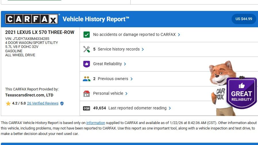 We offer free Carfax vehicle history reports on our website.