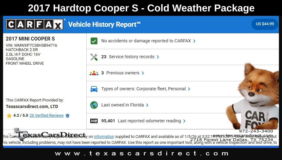The John Cooper Works Exterior Package and Cold Weather Package add a touch of sportiness and practicality, while the Satellite Radio, LED Headlights, and Power-Folding Exterior Mirrors enhance your driving pleasure.