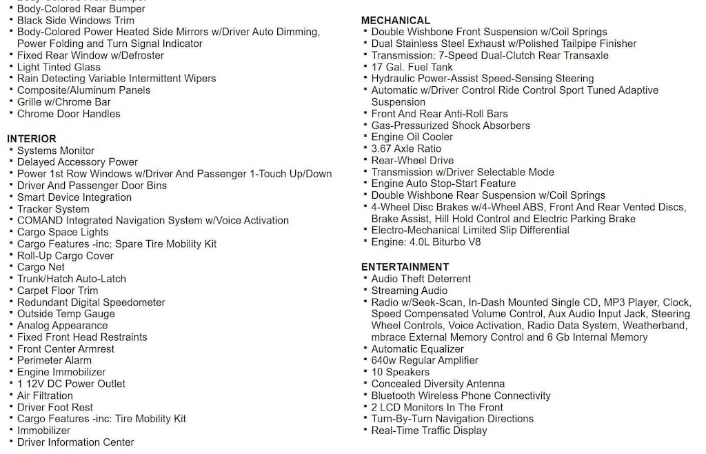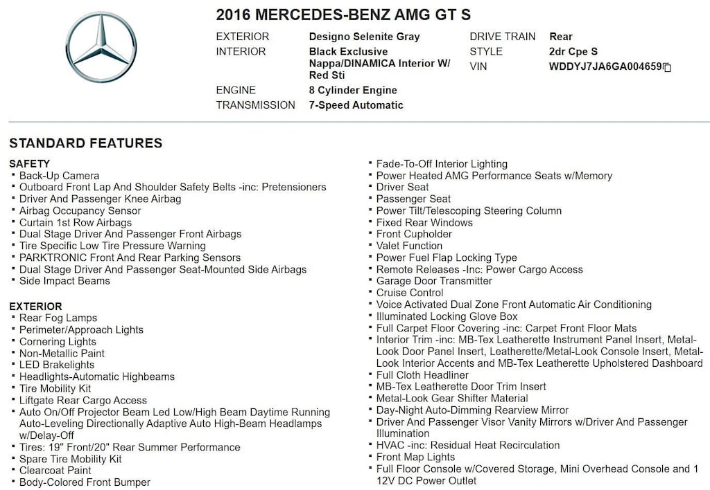 LANE TRACKING PACKAGE, AMG DYNAMIC PLUS PACKAGE, EXCLUSIVE INTERIOR PACKAGE, AMG NIGHT STYLING, FIXED PANORAMA ROOF, AMG ILLUMINATED DOOR SILL COVERS, RED SEAT BELTS