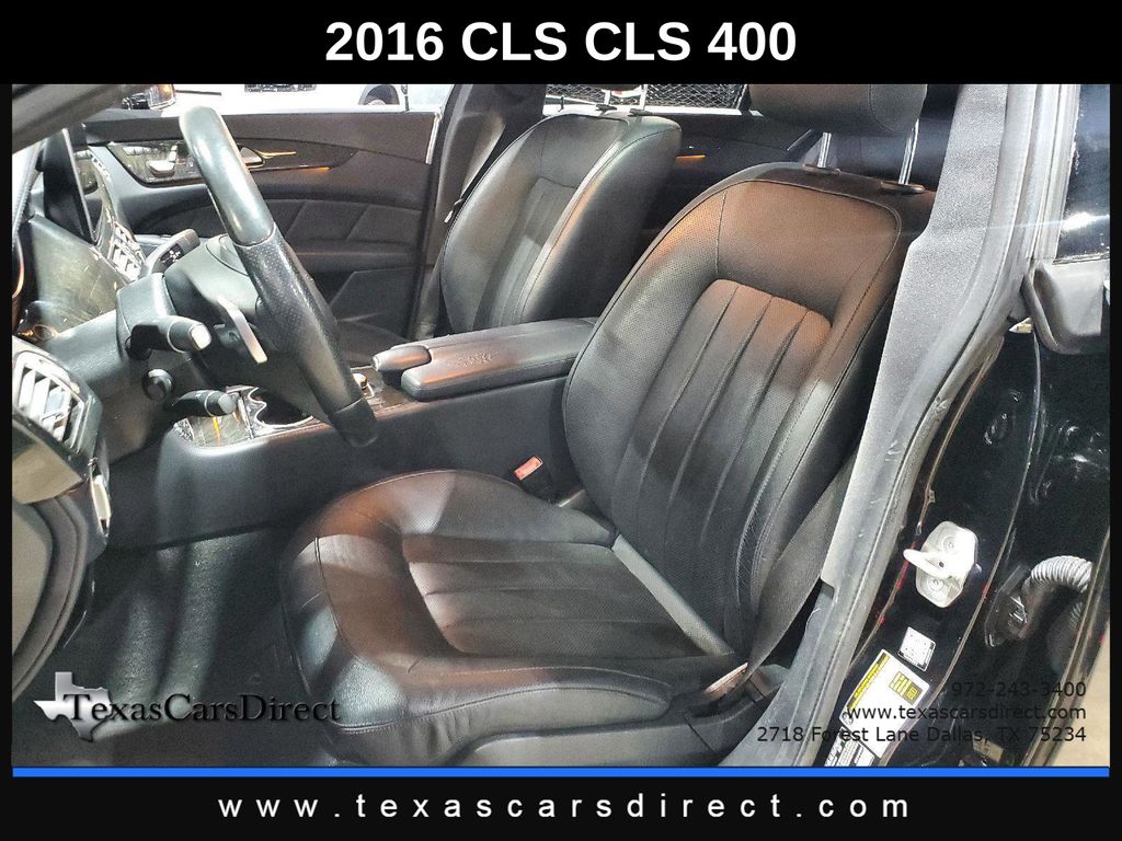 This 2016 Mercedes-Benz CLS CLS 400, has Black exterior and Black interior color. 104,249 miles. Stock Number 173618. You can connect with us by calling 972-243-3400.