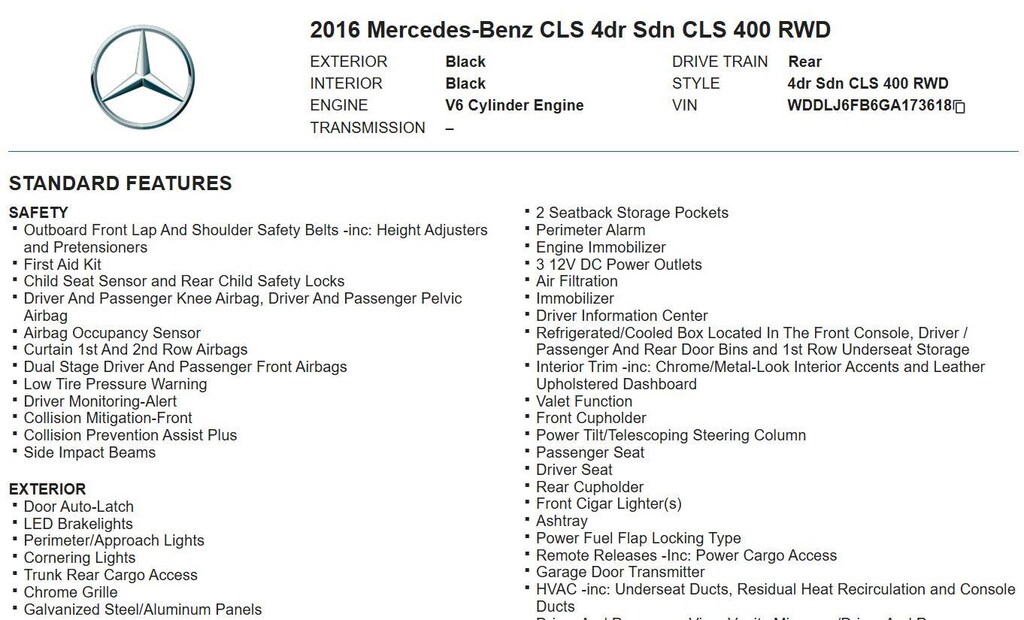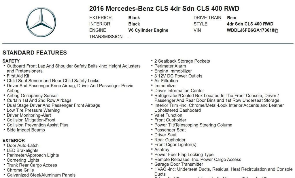 Model: 2016 CLS400C VIN: WDDLJ6FB6GA173618