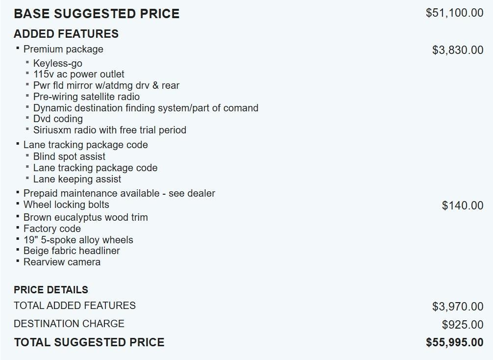 WHEELS: 19 5-SPOKE ALLOY, PREMIUM PACKAGE, LANE TRACKING PACKAGE CODE