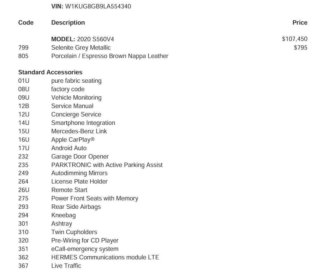 Highlighted by a comprehensive list of desirable options, this S 560 is equipped with: