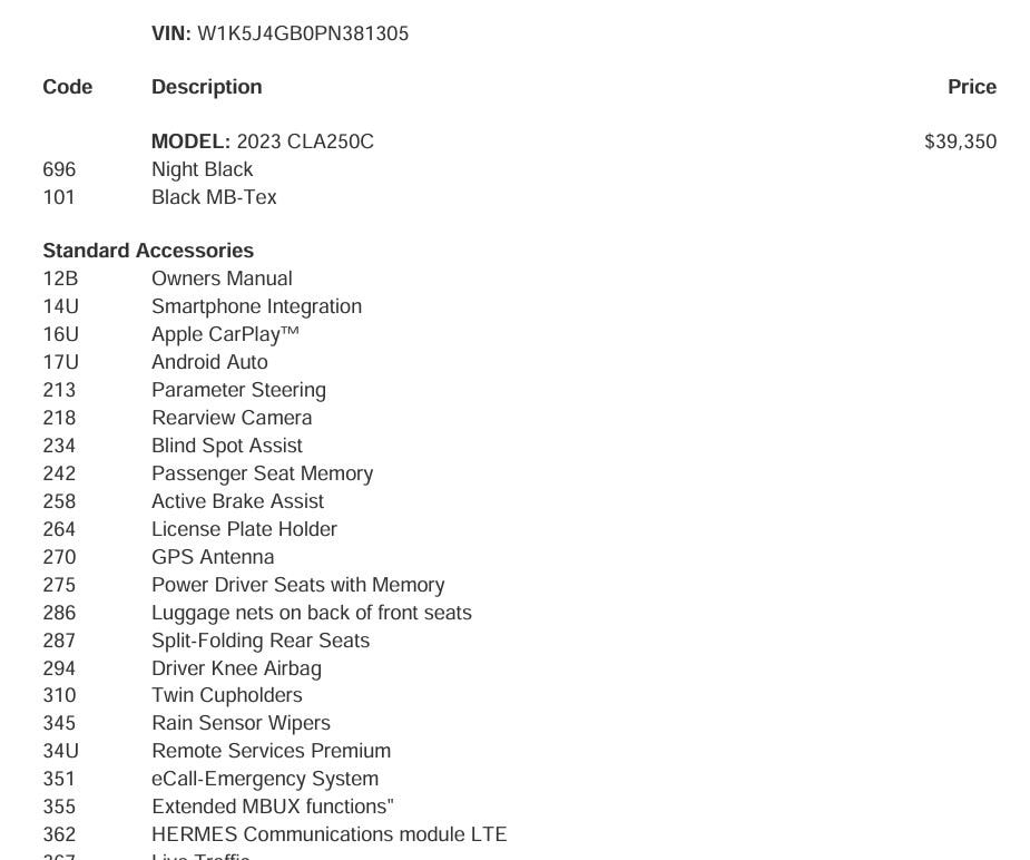Lots of features. I had a CLA 250 2014. This model year is better quality. Driver assist and autonomous driving + lane assist is worth the extra money. - 5.0