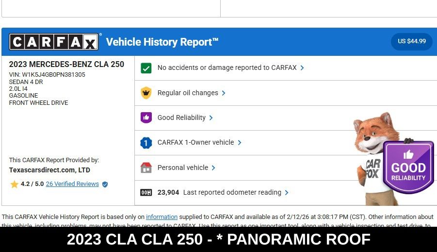 2023 Mercedes-Benz CLA CLA 250 1-Owner Clean Carfax/Premium/Apple