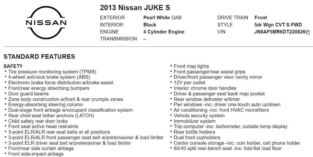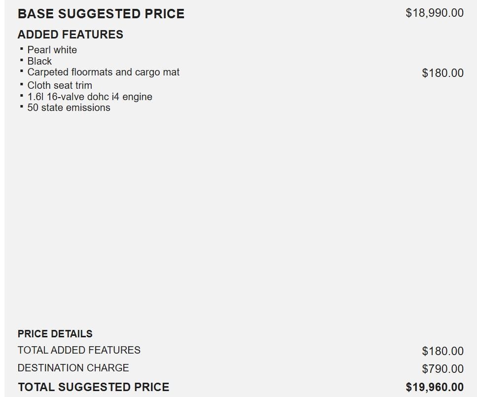 [C03] 50 STATE EMISSIONS, PEARL WHITE, BLACK, CLOTH SEAT TRIM, [L92] CARPETED FLOORMATS/CARGO MAT, [G92] MID-YEAR CHANGE