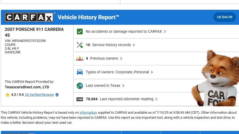 2007 Porsche 911 Carrera 4S COUPE/CLEAN CARFAX/AUTOMATIC/SUNROOF