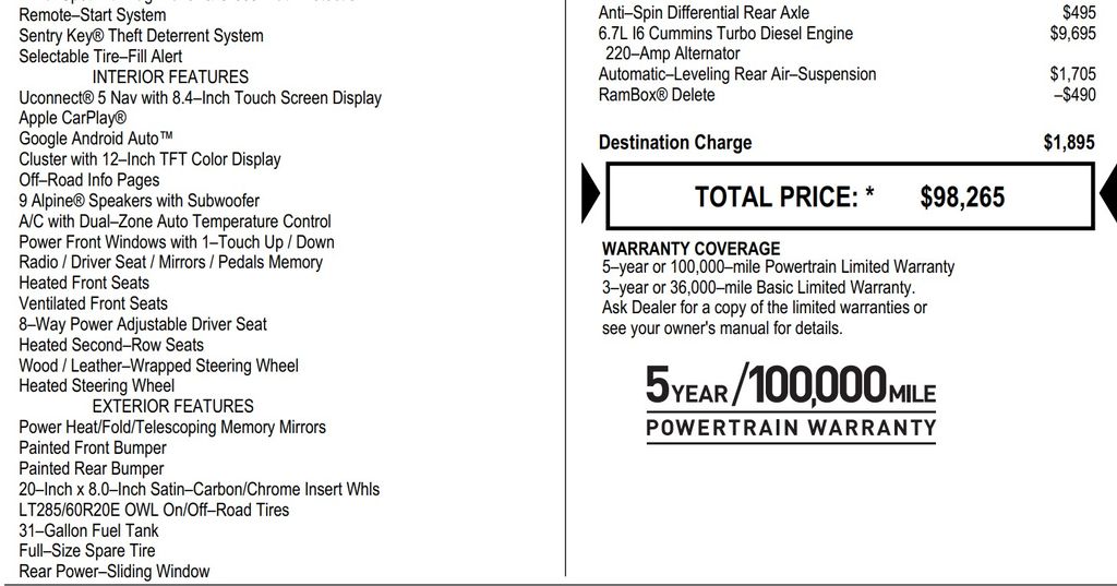 2023 Ram 2500 Limited Cummins Diesel Crew CAB 4WD-$22K Options