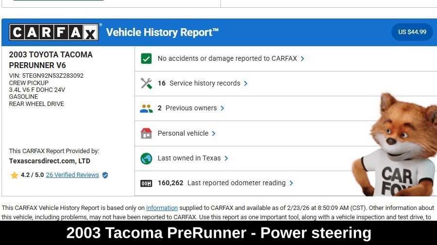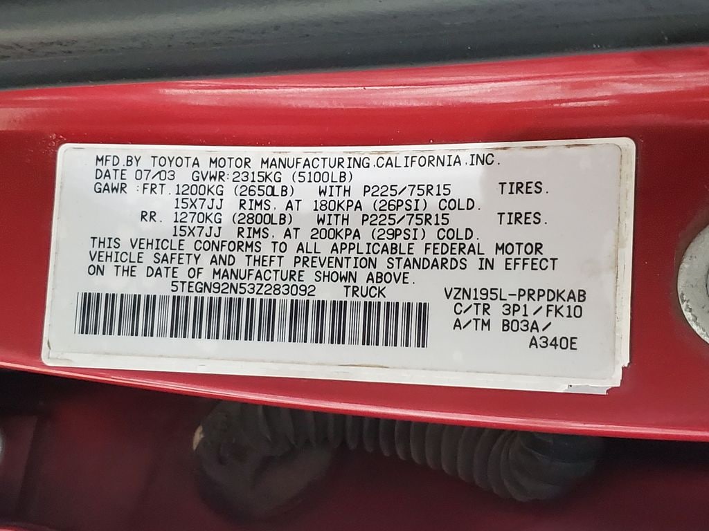 Designed for both work and play, the 2003 Toyota Tacoma PreRunner V6 DOUBLE CAB is a true workhorse. Its rugged construction, off-road capabilities, and reliable performance make it the perfect companion for your next adventure. With a city fuel economy of 17 MPG and 19 MPG on the highway, this Tacoma balances power and efficiency.