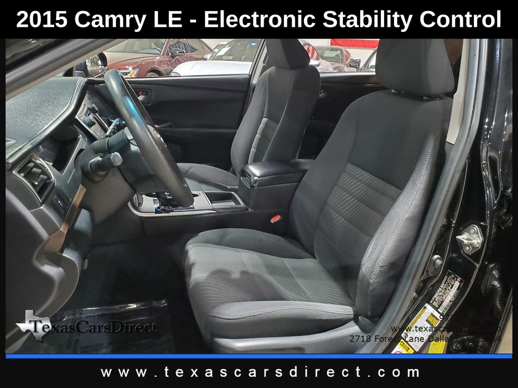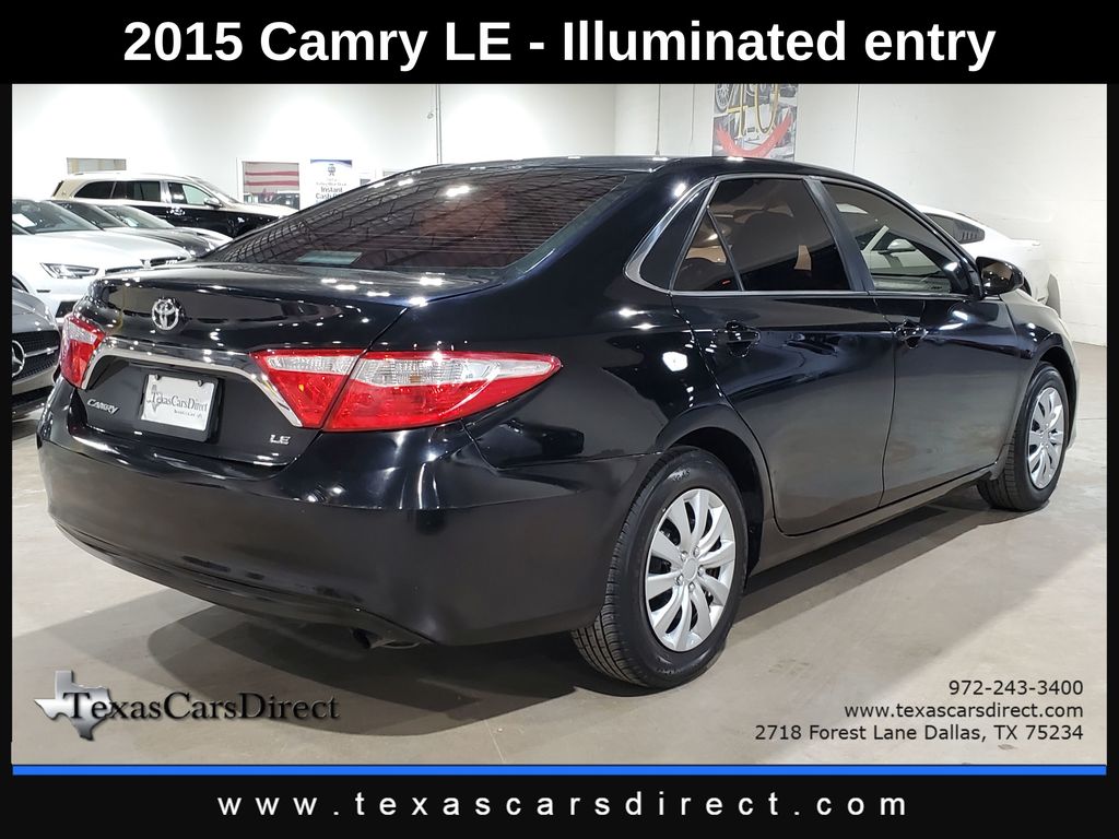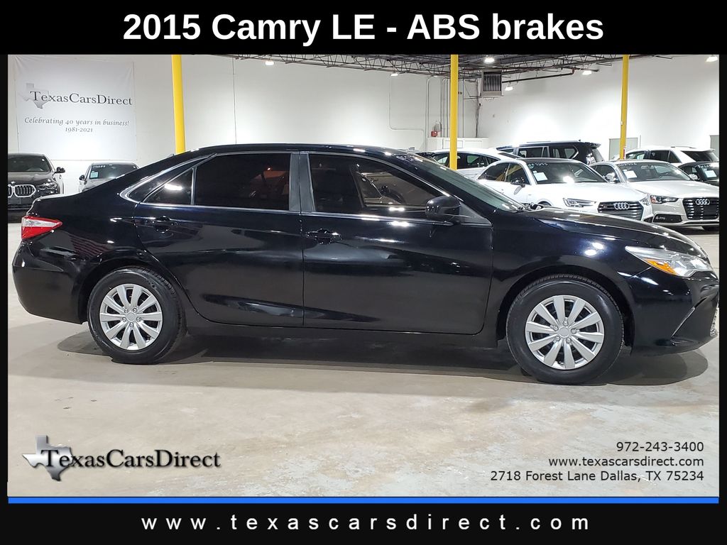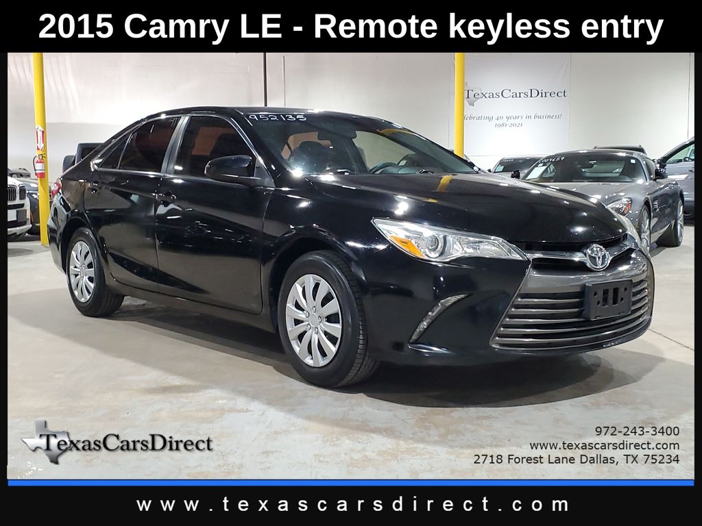 This 2015 Toyota Camry LE, has Attitude Black exterior and Black interior color. 92,476 miles. Stock Number 952135. You can connect with us by calling 972-243-3400.