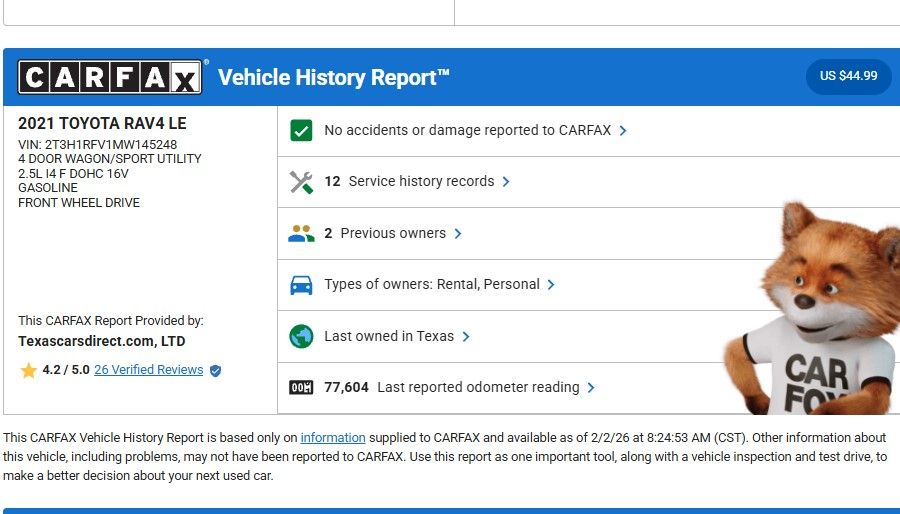 We offer free Carfax vehicle history reports on our website.