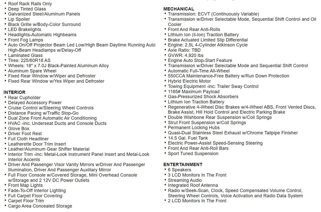- Rear cargo: power liftgate