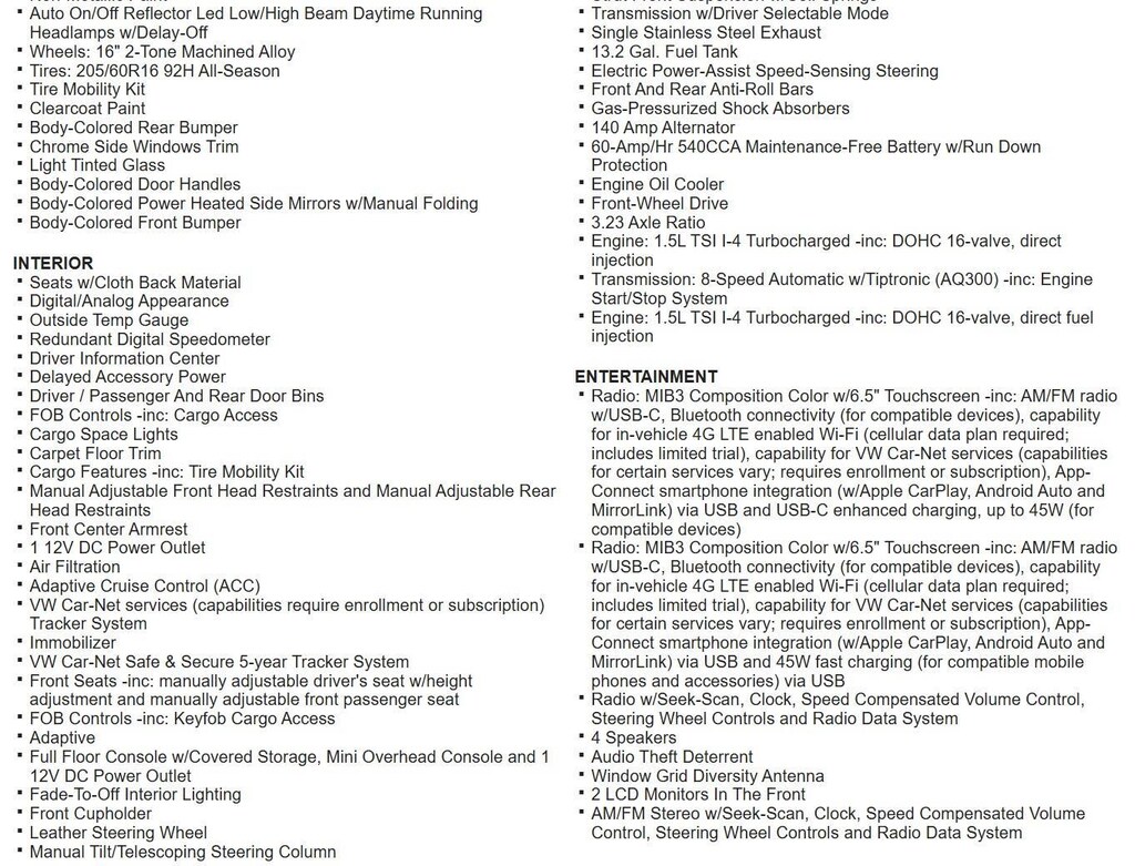 Transmission: 8-Speed Automatic w/Tiptronic -inc: Engine Start/Stop System, Front-wheel drive, 2 LCD Monitors In The Front, 6-Way Driver Seat, Adaptive Cruise Control (ACC), Front Assist (Forward Collision Warning and Autonomous Emergency Braking), Collision Mitigation-Front, Back-Up Camera