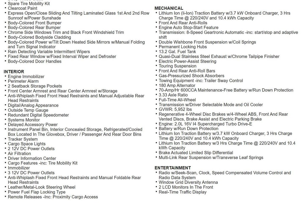 Lithium Ion (li-Ion) Traction Battery w/3.7 kW Onboard Charger, 3 Hrs Charge Time @ 220/240V and 10.4 kWh Capacity, Express Open/Close Sliding And Tilting Laminated Glass 1st And 2nd Row Sunroof w/Power Sunshade