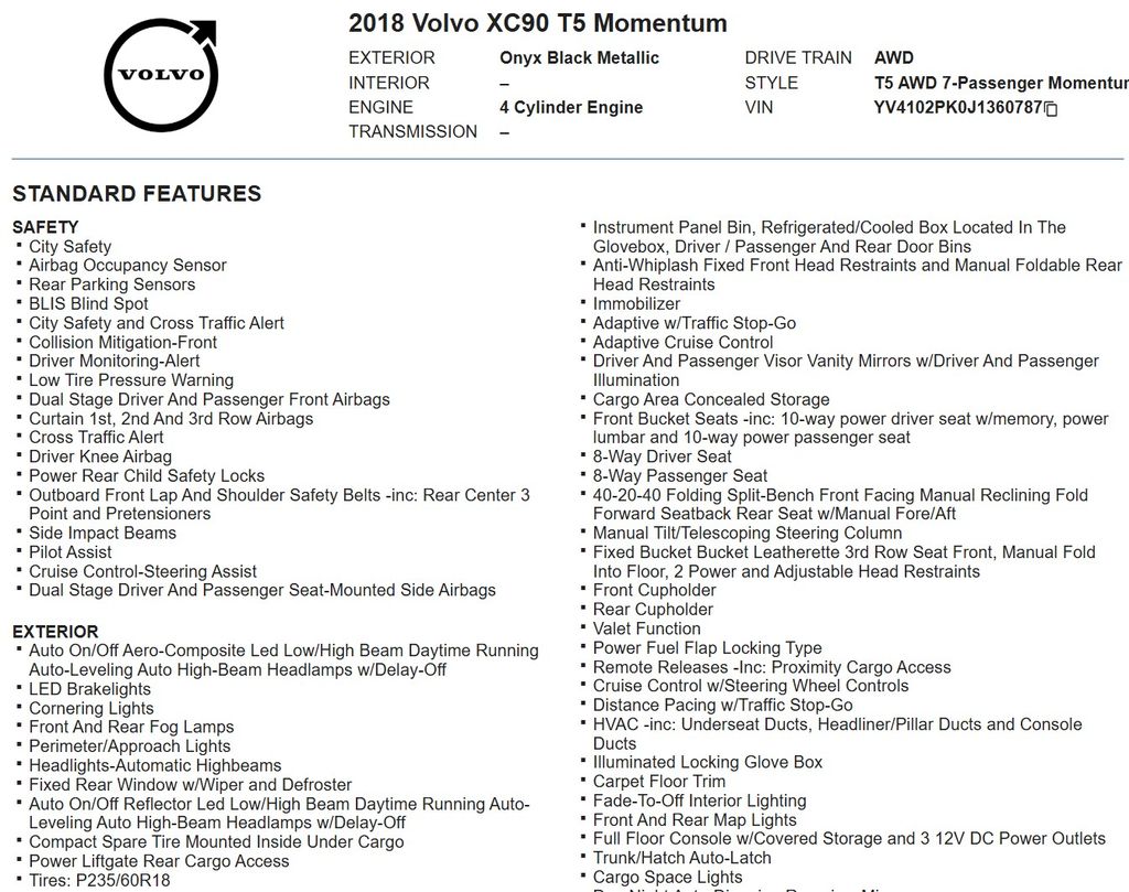 This 2018 Volvo XC90 T5 Momentum AWD is a true standout in the premium SUV segment. With its exceptional features, impressive performance, and Volvo's commitment to safety, it's the perfect choice for discerning buyers seeking a sophisticated and capable vehicle.