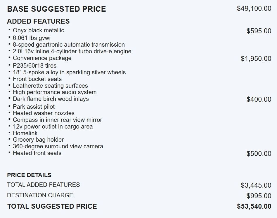 Indulge in the convenience of Apple CarPlay, the security of Blind Spot Monitoring, and the comfort of Heated Seats and Steering Wheel. Enjoy the panoramic views from the Sunroof, and let the 360-Degree Surround View Camera guide you effortlessly into any parking spot. With the Convenience Package, you'll also appreciate the added benefits of Park Assist Pilot, Heated Washer Nozzles, and a Grocery Bag Holder.