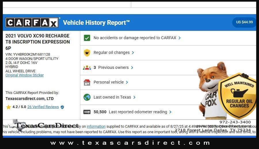 2021 Volvo XC90 Recharge Plug-In Hybrid T8 Inscription Expression 6 Passenger Clean Carfax