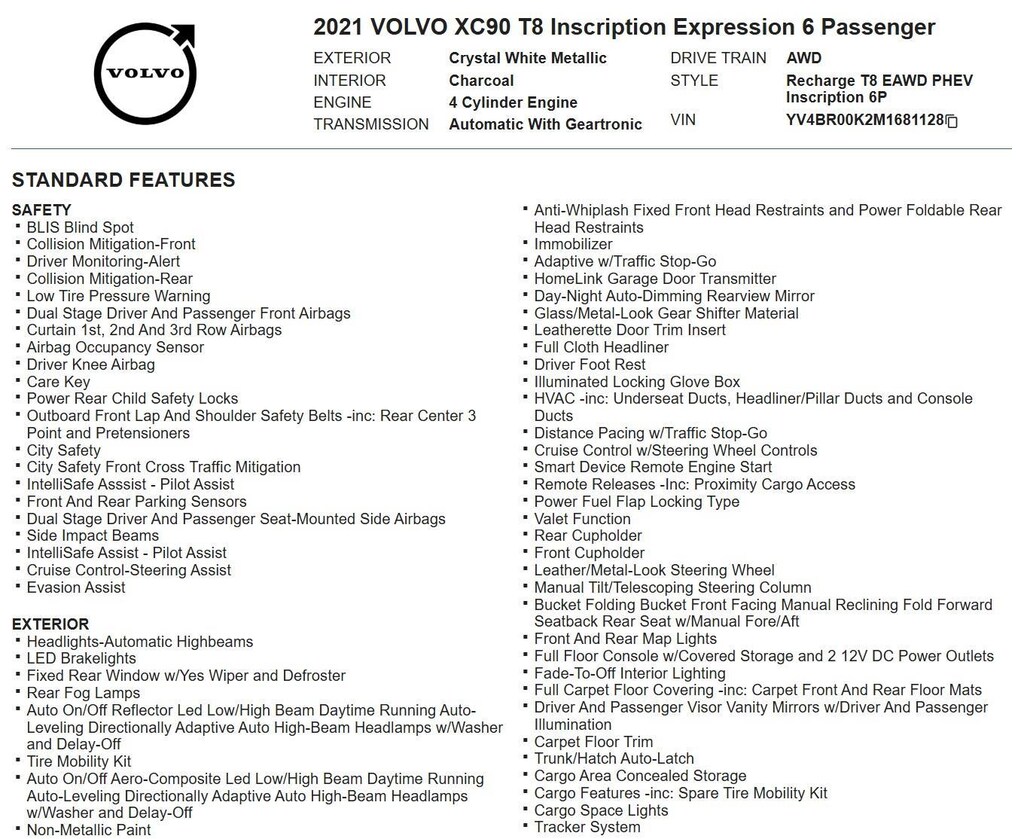 Regenerative 4-Wheel Disc Brakes w/4-Wheel ABS, Front And Rear Vented Discs, Brake Assist, Hill Descent Control and Electric Parking Brake, Lithium Ion (li-Ion) Traction Battery w/3.7 kW Onboard Charger, 3 Hrs Charge Time @ 220/240V and 11.6 kWh Capacity, HomeLink Garage Door Transmitter, Adaptive w/Traffic Stop-Go, Front And Rear Parking Sensors, BLIS Blind Spot